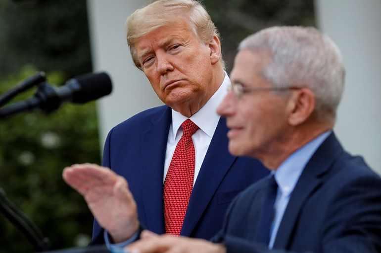 US President Donald Trump retweeted a call for the firing of the administration’s top infectious disease specialist, Dr Anthony Fauci, who is leading the government’s coronavirus response.