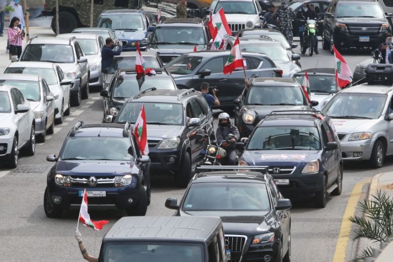 Beirut, Lebanon – Protesters took to the streets of Lebanon in their cars on Tuesday, demonstrating against worsening economic and social conditions in the country.