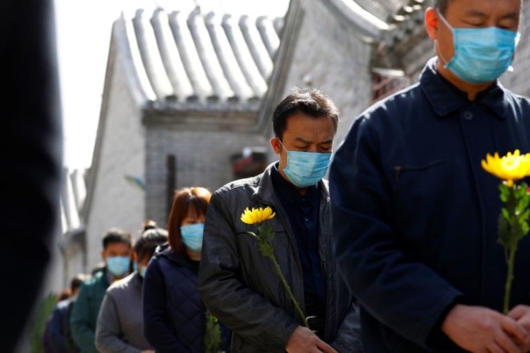 Chengdu, China – China has held a national day of mourning in honour of those who died from the coronavirus pandemic that killed at least 3,335 people in the mainland, including 13 medical workers who died after contracting the disease while treating their patients.