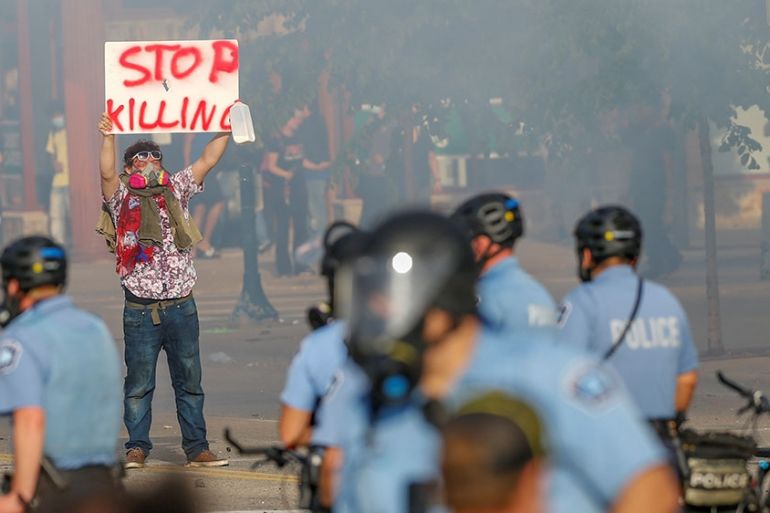 Thursday marked a third night of demonstrations in the Minnesota city over the death of George Floyd, an unarmed Black man, seen on video gasping for breath while a white police officer knelt on his neck.