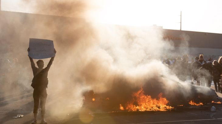 While the protests started peacefully, they descended into chaos with reports of looting, arson and vandalism.