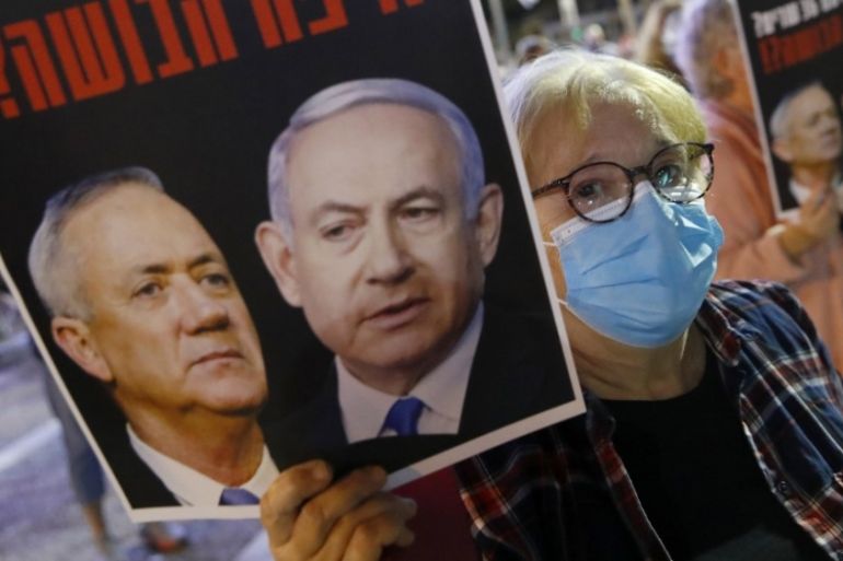Protesters are upset that Netanyahu’s power-sharing deal with Gantz leaves the prime minister in power as he prepares to go on trial for corruption charges.