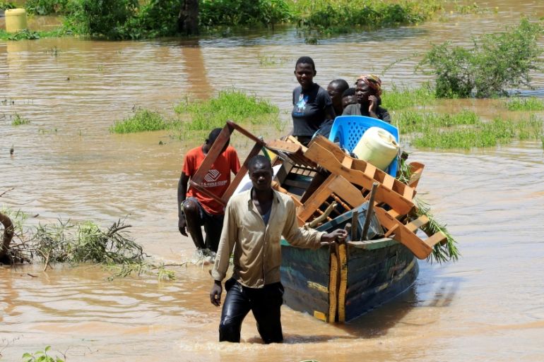 In Budalangi, western Kenya, residents have had to carry their belongings away from their submerged houses using boats and motorbikes, after the River Nzoia burst its banks.