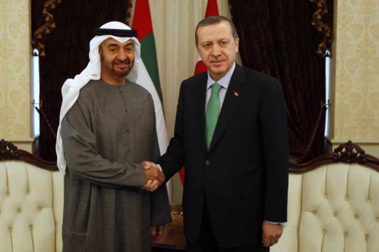Abu Dhabi's Crown Prince Sheikh Mohammed bin Zayed and Turkish leader Recep Tayyip Erdogan during a meeting in Ankara in 2012 [File: Umit Bektas/Reuters]