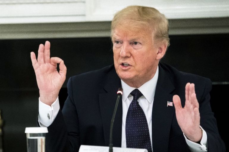 President Donald Trump who has threatened to halt funding to the World Health Organization speaks during a roundtable in the State Dining Room of the White House on May 18, 2020 in Washington, DC [Doug Mills/ Pool/Getty Images/AFP]