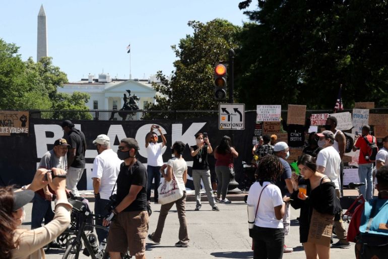 Washington, DC – The massive black fence that encircles the White House, erected after US security violently cleared peaceful protesters last week, has become a gallery of protest art and a symbol of defiance.