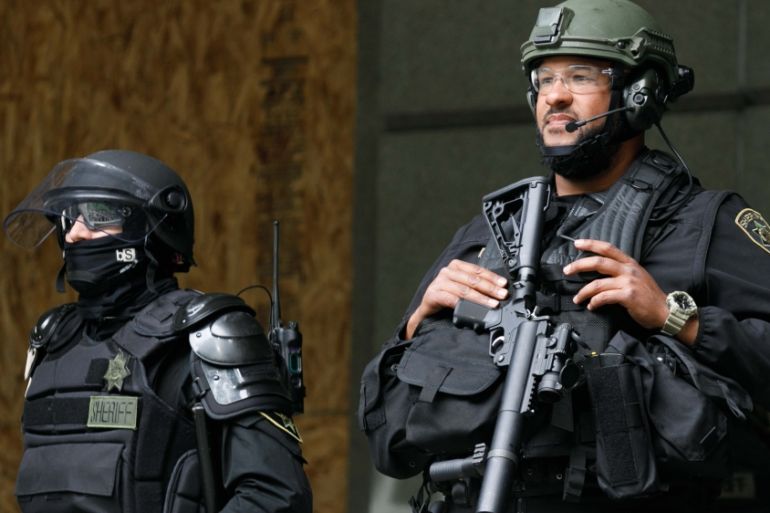 The Department of Homeland Security (DHS) has deployed officers in tactical gear from around the country, and from more than half a dozen federal law enforcement agencies and departments, to Portland, Oregon, as part of a surge aimed at what a senior official said were people taking advantage of demonstrations over the police killing of George Floyd to commit violence and vandalism.