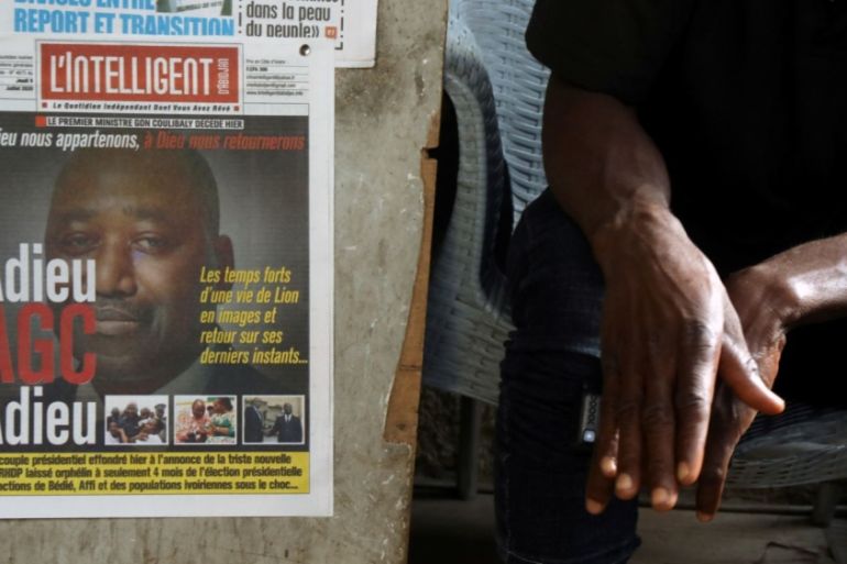 Official mourning period starts in Ivory Coast amid questions over governing party’s candidate in October vote.