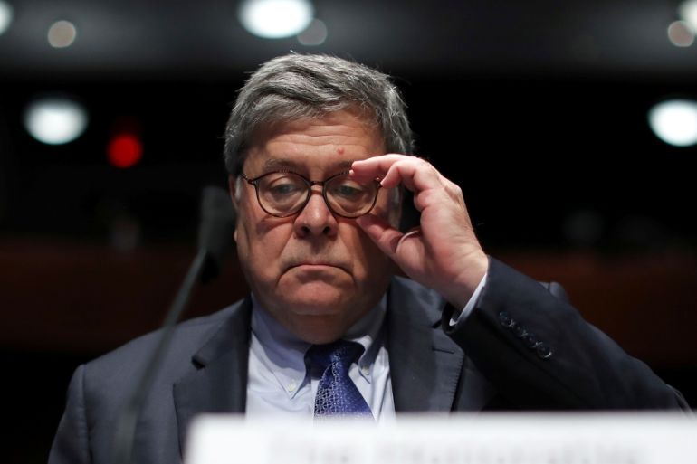 Barr faces criticism over his actions, which Democrats say have politicised the Justice Department to support Trump.