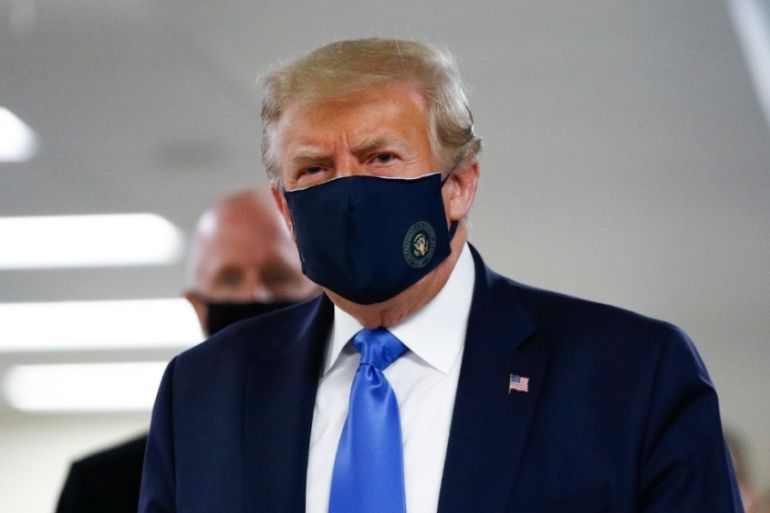 Critics say Trump’s previous refusal to wear one showed a lack of leadership as US death toll hits more than 134,000.