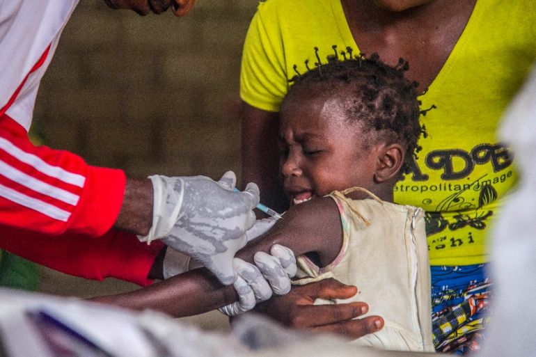 A toddler undergoes a measles vaccination at a centre in Temba near Seke Banza in the western Democratic Republic of the Congo [File: Junior Kannah/AFP]