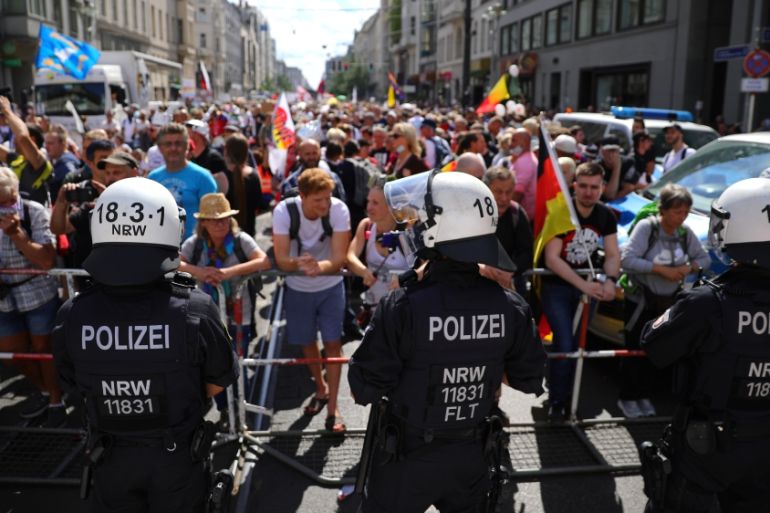 Global News Insight’s Dominic Kane, reporting from Berlin, said the main protest has not been officially called off yet, but police have urged organisers to disperse as they believe that social distancing rules were not being observed.