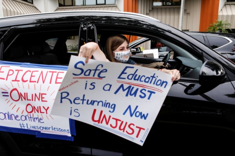 Teachers and support staff at more than 35 school districts across the US are protesting against the reopening of schools while COVID-19 is surging in many parts of the country.