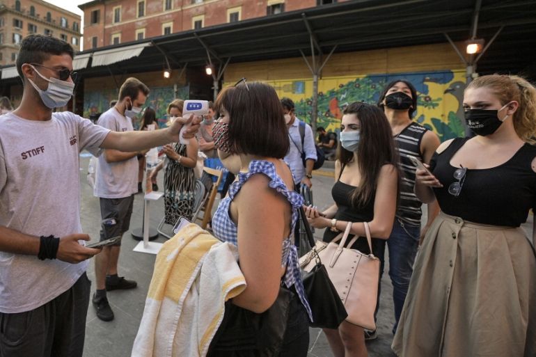 - Faced with an uptick in coronavirus cases, Italy orders mask wearing in public from 6pm – 6am and a three-week closure of all dance venues.