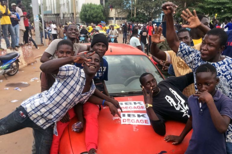 In the capital, energised by reports of the mutiny, hundreds of opposition supporters poured into the square around the Independence Monument, the site of mass anti-Keita protests since June.