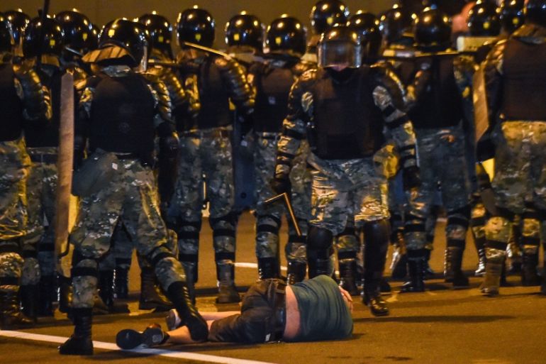 Police beat protesters as exit poll gives President Lukashenko 79.7 percent, with rival Tikhanovskaya at 6.8 percent.