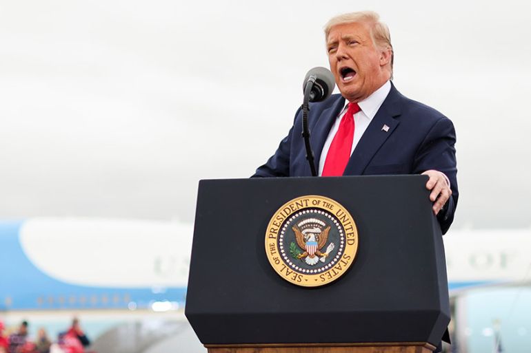 At a campaign event in Freeland, Michigan, US President Donald Trump promised to bring the United States back from the coronavirus pandemic and rallied a crowd of mostly mask-less supporters packed into an aircraft hanger.