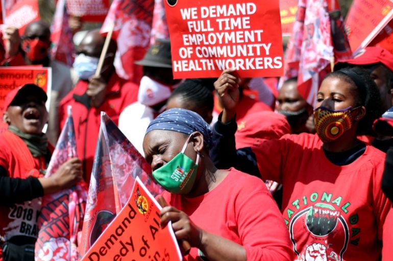 South Africa healthcare workers protest, threaten strike
