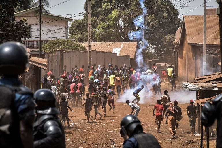 ![A small number of people took part in scattered demonstrations across the capital, Conakry [Cellou Binani/AFP]](https://www.aljazeera.com/wp-content/uploads/2020/10/ab40538752194bb2904d696c3af011b2_18.jpeg?w=770&resize=770%2C513&quality=80)