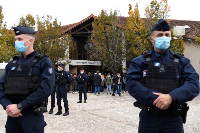 Samuel Paty, who had recently shown students cartoons of the Prophet Muhammad, was beheaded outside his school.