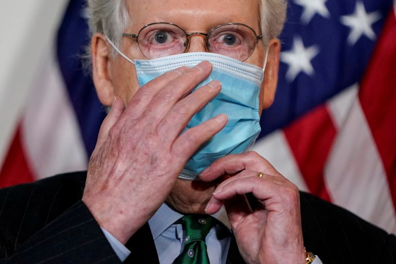 In his November 3 election bid to retain his Senate seat, McConnell faces a long-shot challenge from Democrat Amy McGrath, a former Marine Corps fighter pilot.