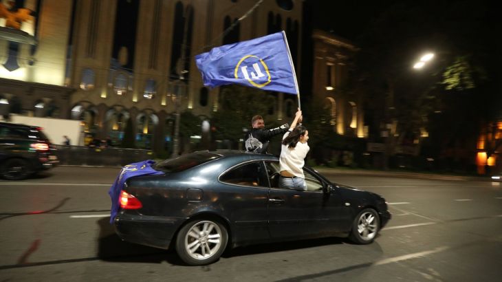 Opposition plans protests as early count shows governing Georgian Dream leading in Saturday’s parliamentary vote.