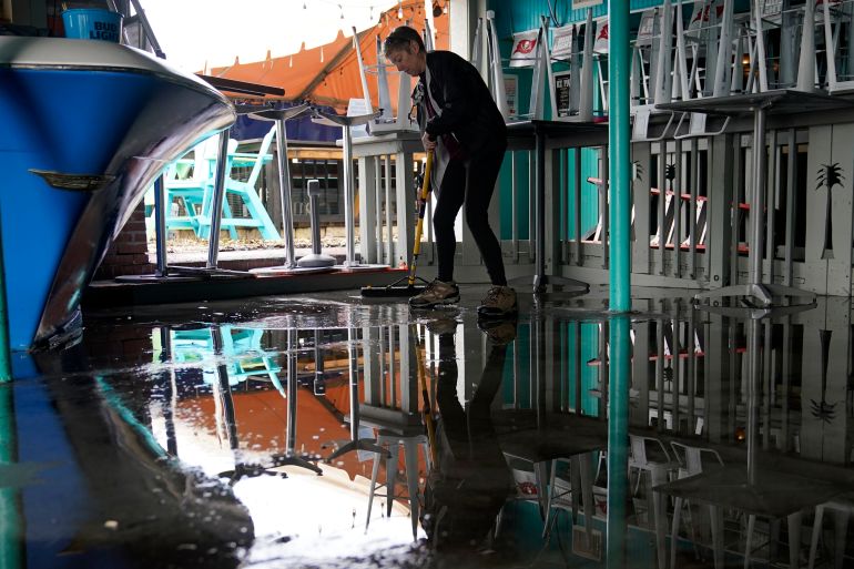 “It was pretty bad last night when I came in,” adding that there were already three to four inches (77mm-100mm) of water inside by just before high tide. “We’re in here doing our cleanup today and assessing the damage. I think we fared pretty well considering as bad as it looked last night.”