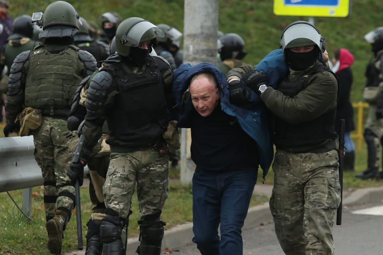 Masked security forces arrested hundreds of people in another day of mass demonstrations against the president of Belarus, Alexander Lukashenko.
