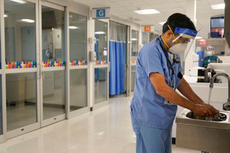 Marissa Lee, a labour and delivery nurse in Kissimmee, Florida, said most nurses at the hospital where she works, the Osceola Regional Medical Center, only receive optimal PPE that provides “airborne and droplet precaution” when they are working directly with patients who are known to be infected with COVID-19. Otherwise, she said, they receive less protective surgical masks.