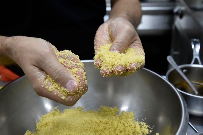 Algerian chef Rabah Ourrad said about making his couscous dishes: “I didn’t learn this in a cooking school. It’s decades of observing the mother, the sisters and all North African women who are experts in this.”
