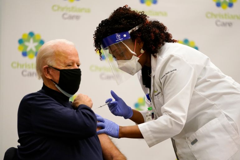 “I’m doing this to demonstrate that people should be prepared when it’s available to take the vaccine,” Biden said after receiving the shot, which was administered by a nurse at ChristianaCare Hospital in Newark, Delaware. “There’s nothing to worry about.”
