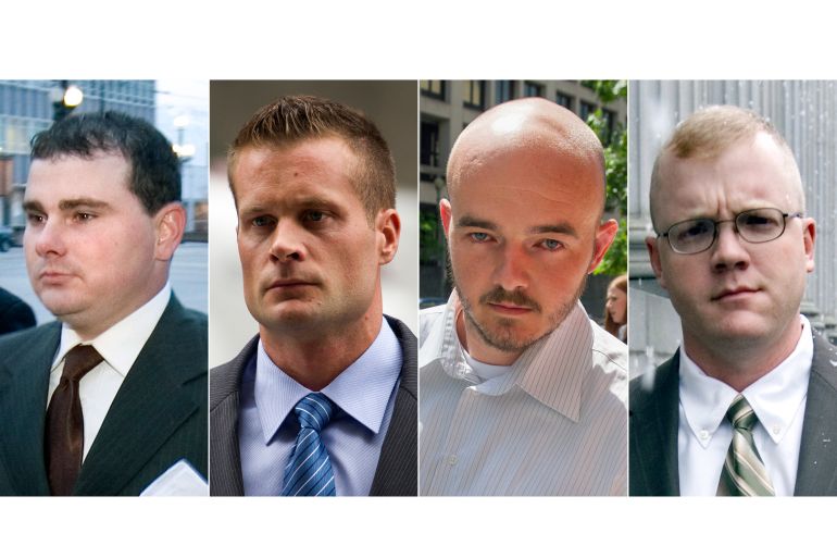 Paul Slough, Evan Liberty, Dustin Heard and Nicholas Slatten were convicted in 2014 after a months-long trial in Washington’s federal court and each man defiantly asserted his innocence at a sentencing hearing the following year.