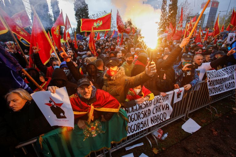 The protesters accused the government, which took power earlier this month, of trying to “erase the Montenegrin state and national identity”.