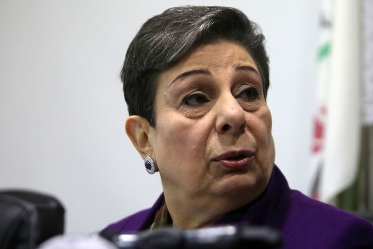 Ashrawi, 74, is the Palestinian Authority’s highest-ranking female politician and has been a member of the PLO executive committee since 2009.