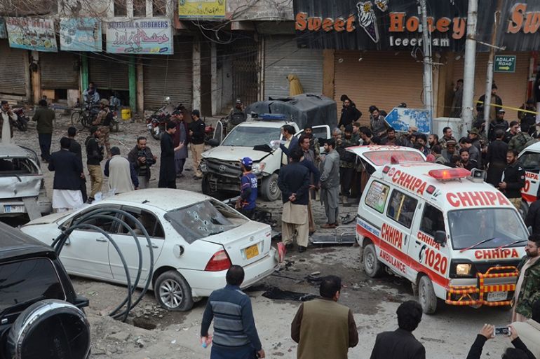 The casualties were taken to Quetta’s main government hospital, about a kilometre (0.6 miles) away from the attack site.