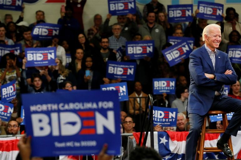 Biden hopes South Carolina victory will boost his campaign as clear alternative to liberal senator Bernie Sanders.