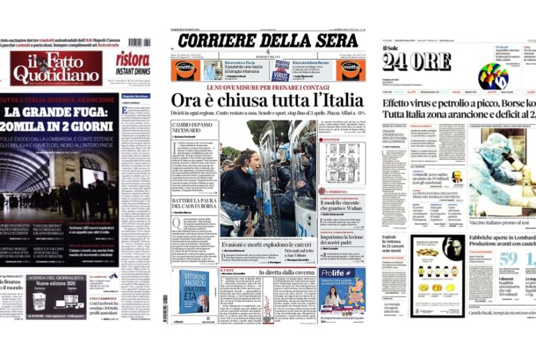Mix of worry and hope: Italian newspapers on coronavirus lockdown