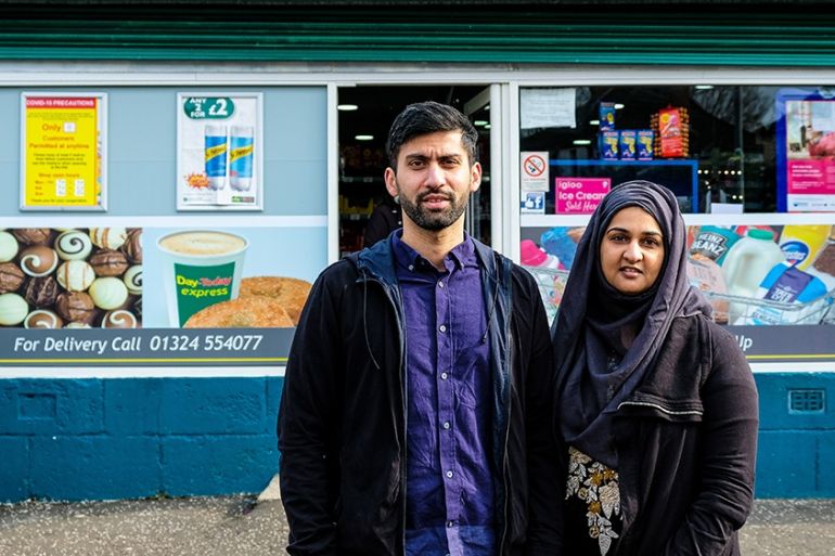 Falkirk, Scotland – It is not even 9am, and a queue has formed outside Asiyah Javed’s grocery shop in Falkirk, Scotland.