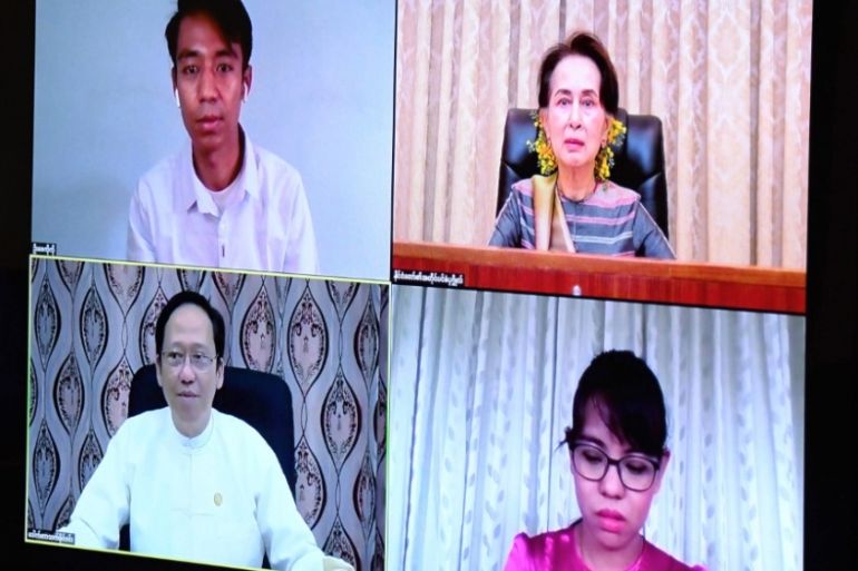 Yangon, Myanmar – Broadcasting live from Myanmar’s capital, Naypyidaw, Aung San Suu Kyi shuffled some papers, looked straight at the camera and smiled before welcoming her guests to a teleconference call on Facebook.