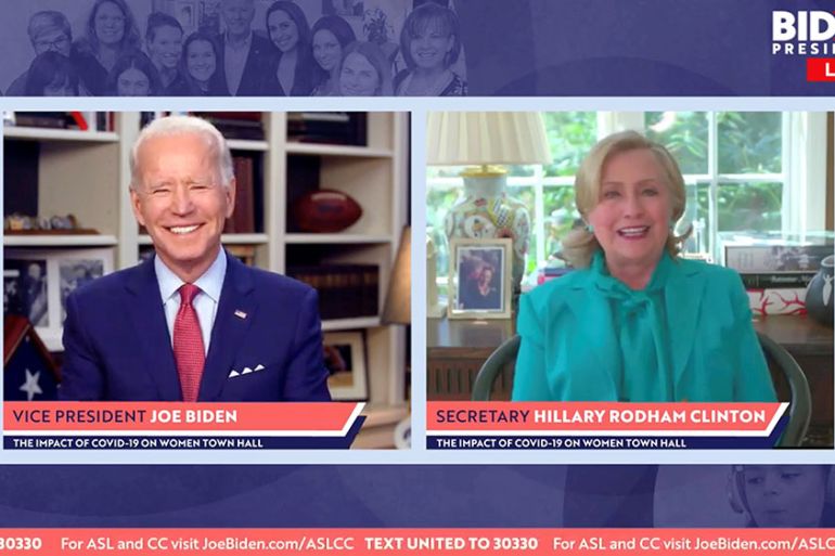 Biden, who has vowed to pick a woman as his running mate this year, introduced Clinton at the town hall as the person who should now be president.