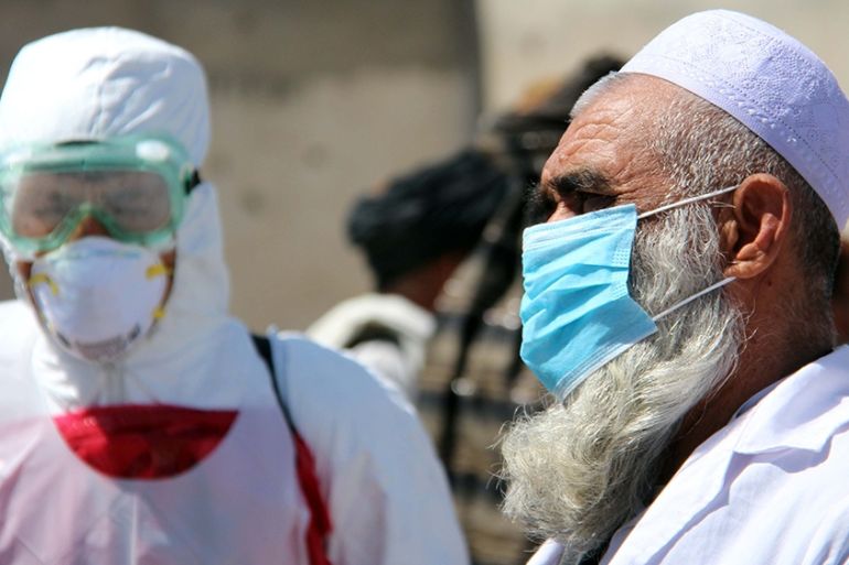 Despite the unusually cold spring weather, Khairullah, who asked for his name to be changed, and his neighbours were welcomed by Taliban fighters holding their AK-47s and dressed in complete medical PPE (personal protective equipment) for a workshop on the prevention of the coronavirus.