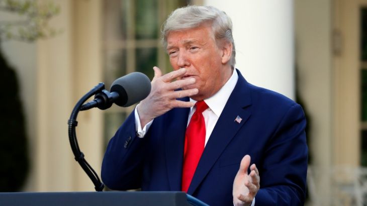 The US president continued to defend his actions in the early days of the crisis and played down Navarro’s memos.
