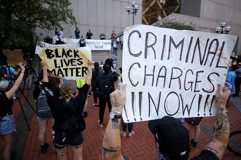 Dozens of fires were also set in nearby Saint Paul, where nearly 200 businesses were damaged or looted. Protests spread across the US, fuelled by outrage over Floyd’s death, and years of violence against African Americans at the hands of police.