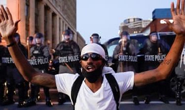 Authorities had hoped Chauvin’s arrest would allay public anger and avert continued unrest. But defying an 8pm curfew imposed by Mayor Jacob Frey, thousands took to the streets for a fourth night. A heavy contingent of National Guard, state troopers and police moved in, some on foot and some in vehicles.