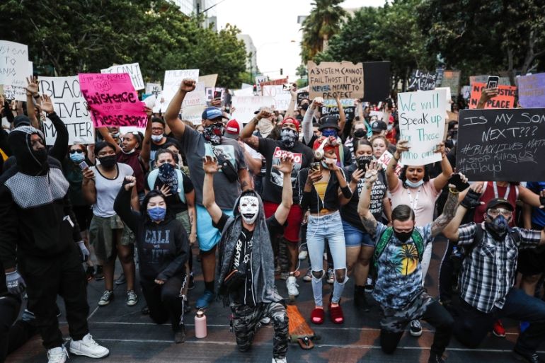 Mayor Eric Garcetti says he asked California Governor Gavin Newsom on Saturday to send 500 to 700 guardsmen. Crowds of demonstrators have torched police cars, vandalised and burglarised shops and clashed with officers. Hundreds of people have been arrested since Friday night. Police have used tear gas to disperse the crowd.