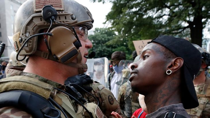 Trump calls himself the president of “law and other”, and threatens to send American soldiers to the streets to quell the unrest, prompting outrage.