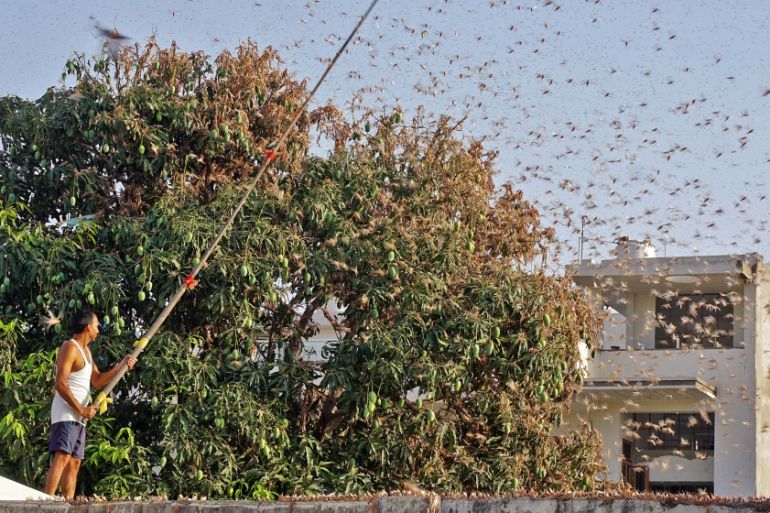 Millions of locusts have also engulfed India’s seven heartland states, including the western desert of Rajasthan, and threaten vegetable and pulse crops such as lentils and beans.