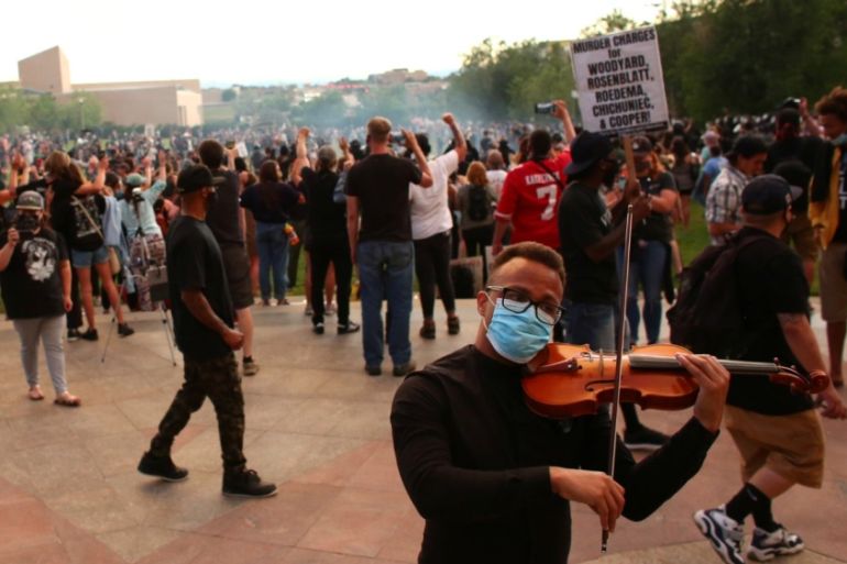 A police chief has defended the tactics of officers who used pepper spray and batons on protesters gathered during a demonstration and violin vigil for Elijah McClain, a 23-year-old unarmed Black man who died after he was put in a chokehold during a police stop last year.