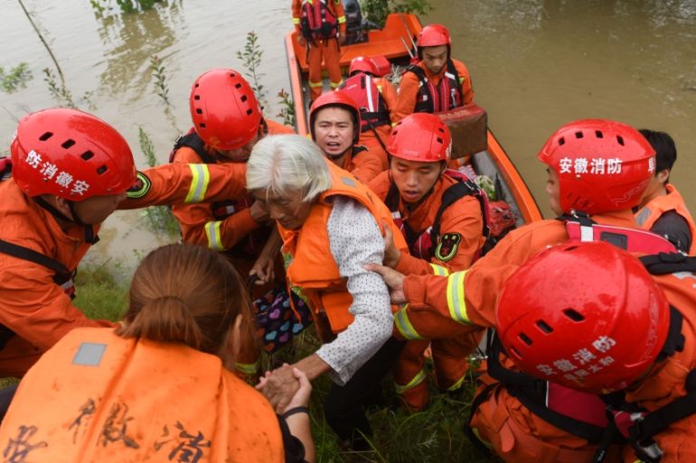 Rescue workers evacuate residents in Anhui and Hubei provinces as torrential rains continue to lash China.