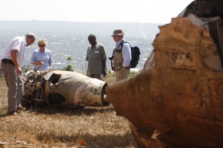 The plane was struck by at least one missile as it came in to land at Kigali, also killing Burundi’s President Cyprien Ntaryamira, another Hutu, on board.